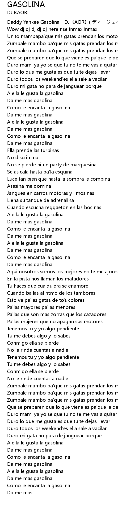 | [00:00.100] | Daddy Yankee Gasolina DJ KAORI ? |