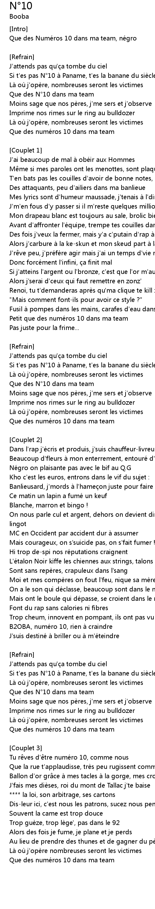 | Si t' es pas N 10 a Paname, t' es la banane du sie cle | |