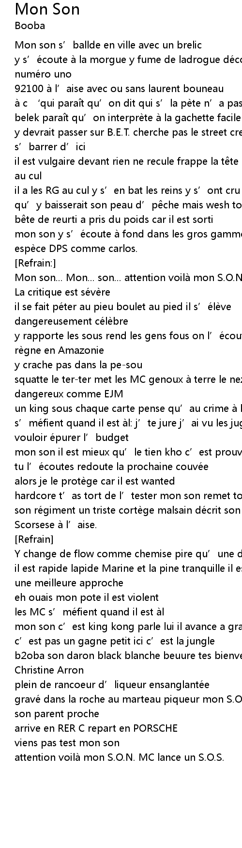 | Mon son... Mon... son... attention voila mon S. O. N. MC lance un S. O. S. | |