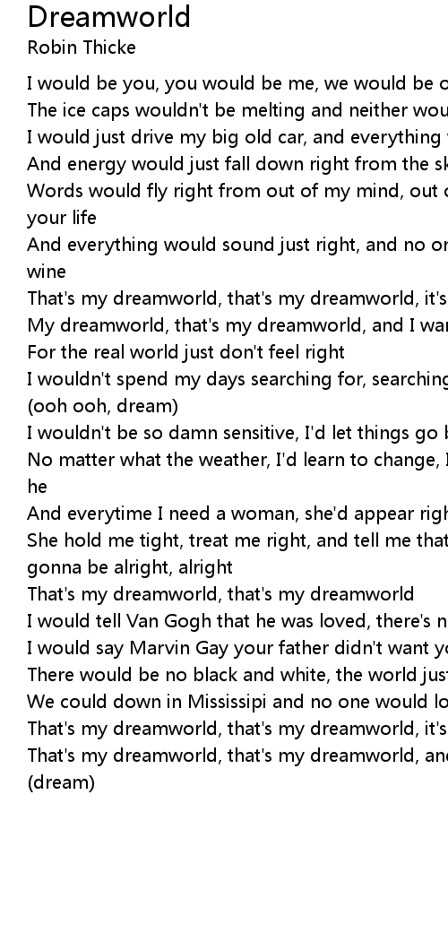 That's my dreamworld, that's my dreamworld |