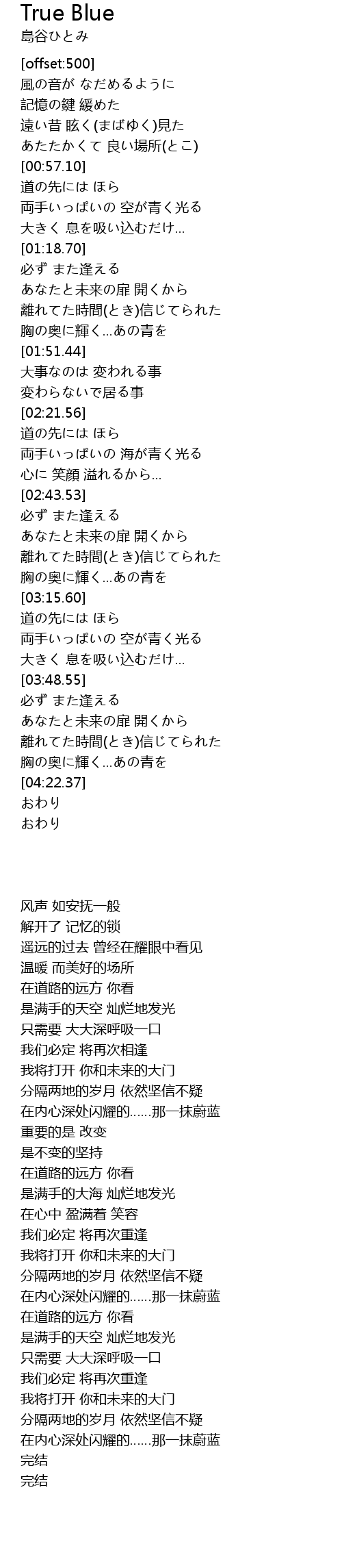 | [01:42.47] | 胸の奥に輝く...あの青を |