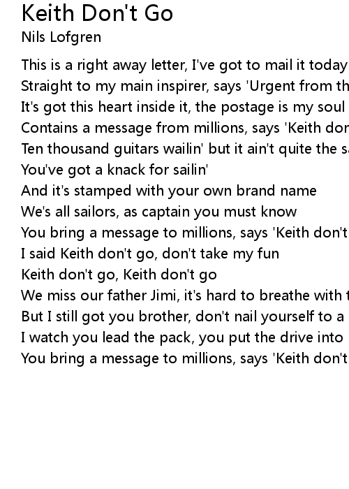 Keith don't go, Keith don't go |