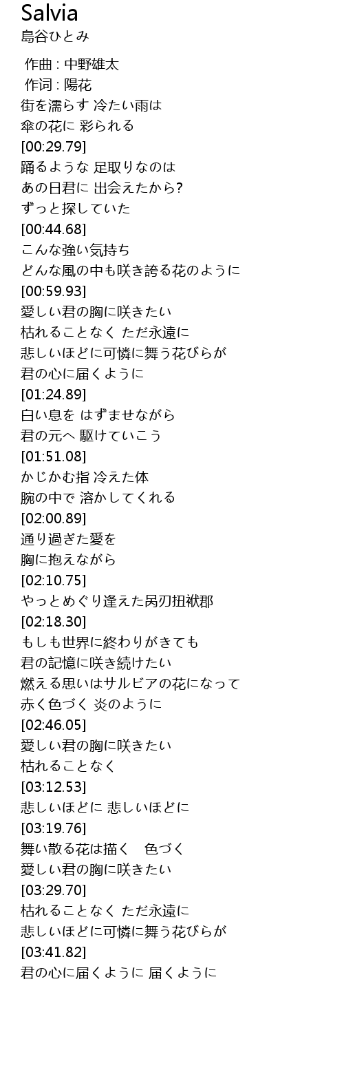 | [02:33.21] | 燃える思いはサルビアの花になって |