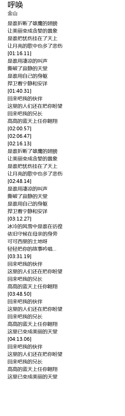| [03:20.49] | 可可西里的土地呀 |