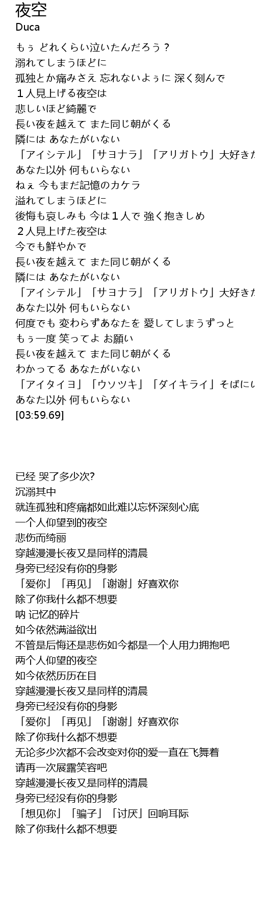| [01:22.35] | 「アイシテル」「サヨナラ」「アリガトウ」大好きだよ |