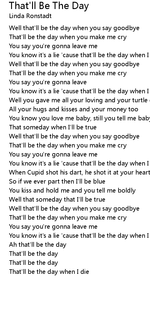 You know it's a lie 'cause that'll be the day when I die |