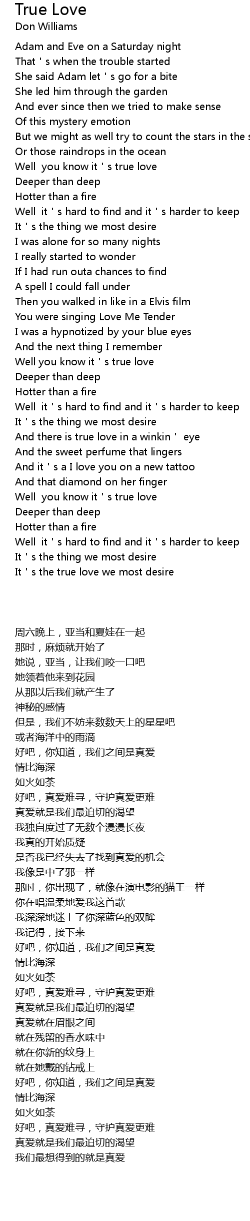 | [00:41.57] | Well you know it's true love |