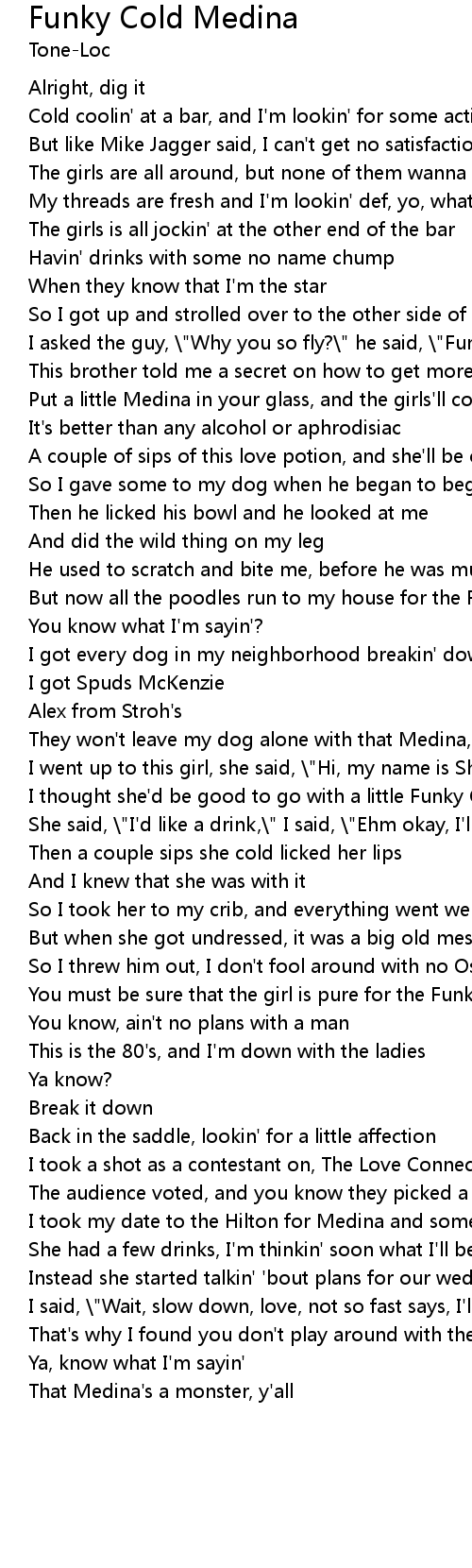 But now all the poodles run to my house for the Funky Cold Medina |
