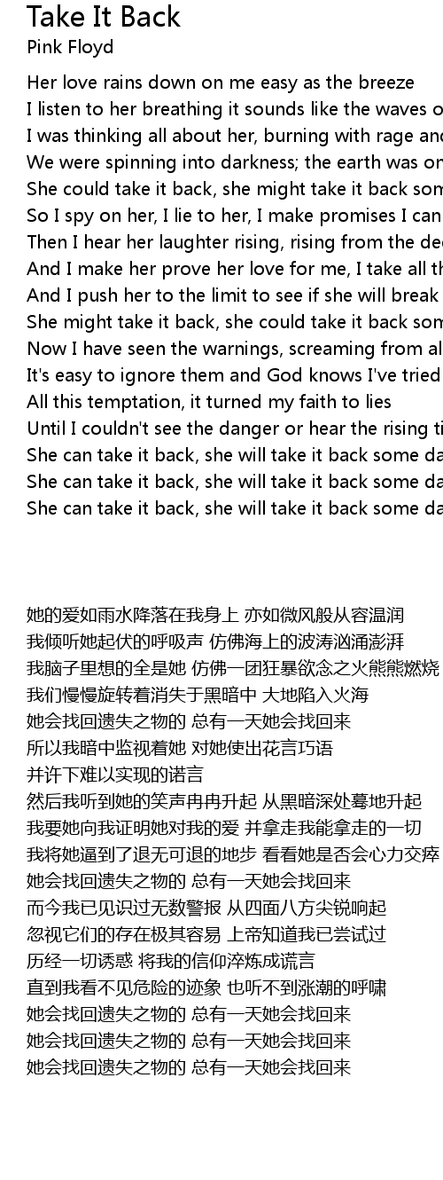 She can take it back, she will take it back some day |