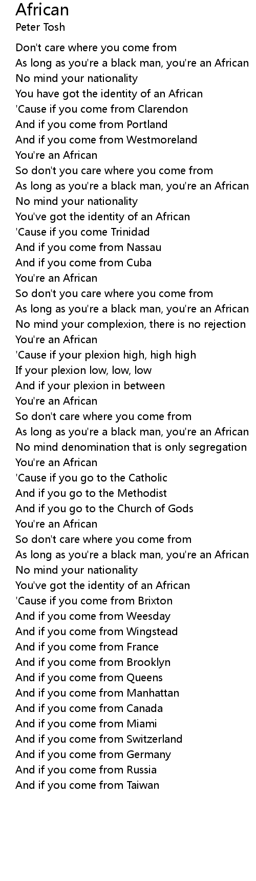 Don't care where you come from |
