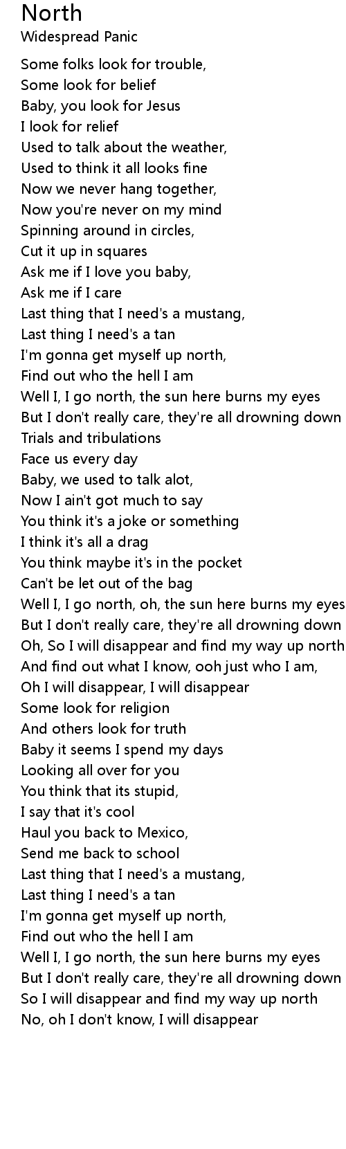 So I will disappear and find my way up north |