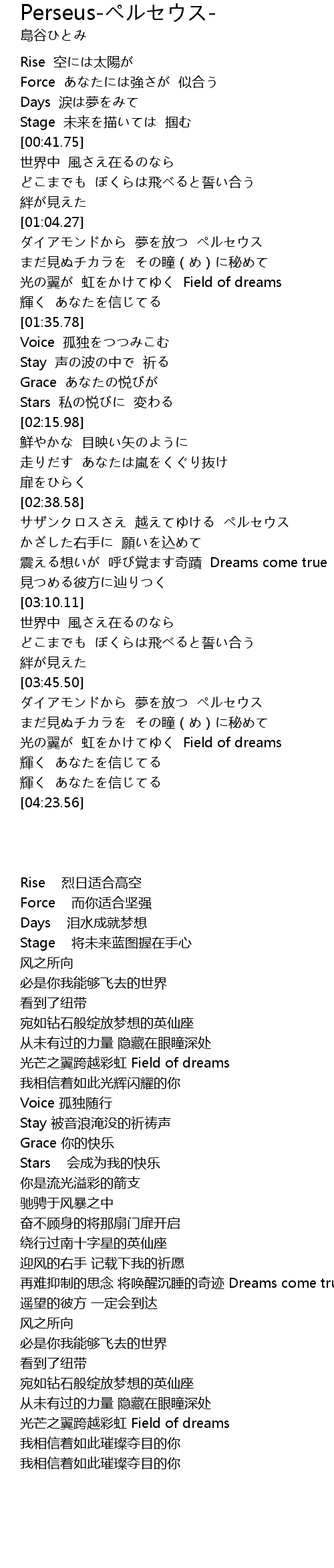 | [01:08.53] | ダイアモンドから 夢を放つ ペルセウス |