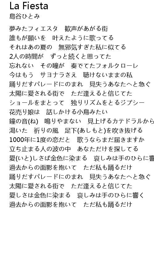 | [00:43.35] | 夢みたフィエスタ 歓声があがる街 |
