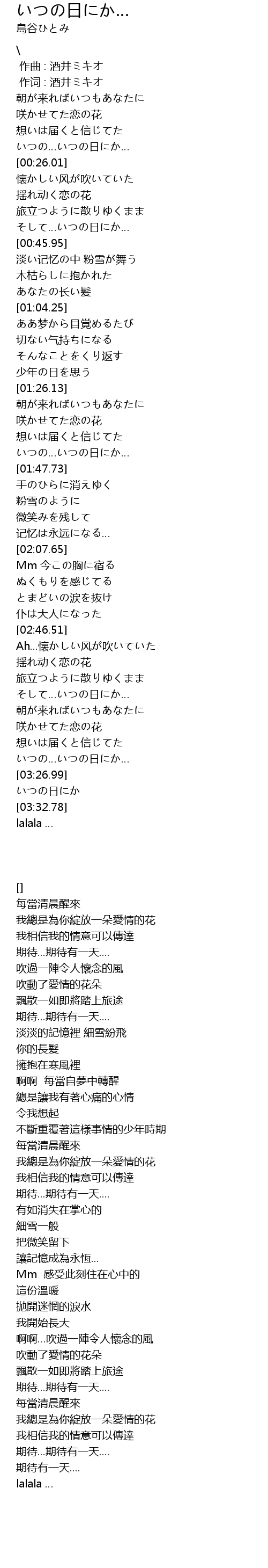 | [03:07.70] | 朝が来ればいつもあなたに |