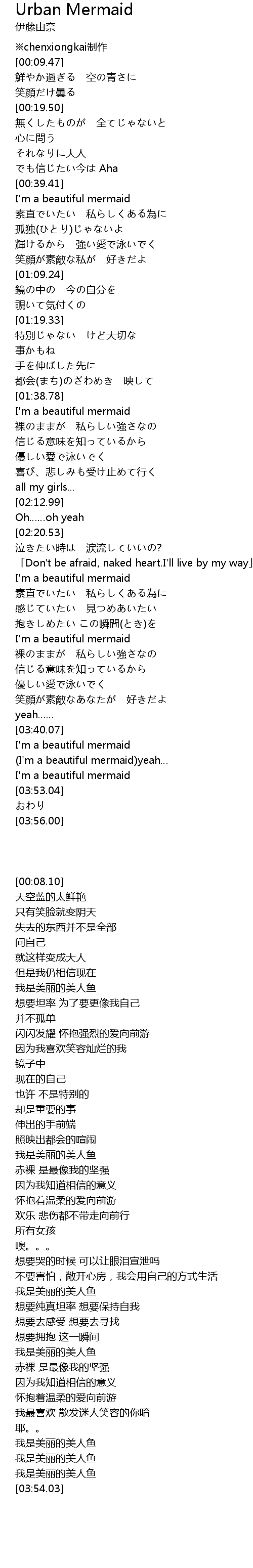 | [03:02.50] | I'm a beautiful mermaid |