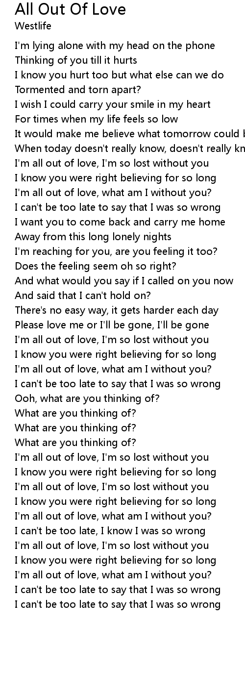I'm all out of love, I'm so lost without you |