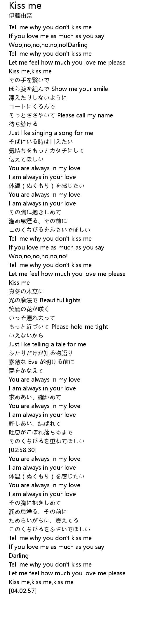 | [03:57.51] | Kiss me, kiss me, kiss me |