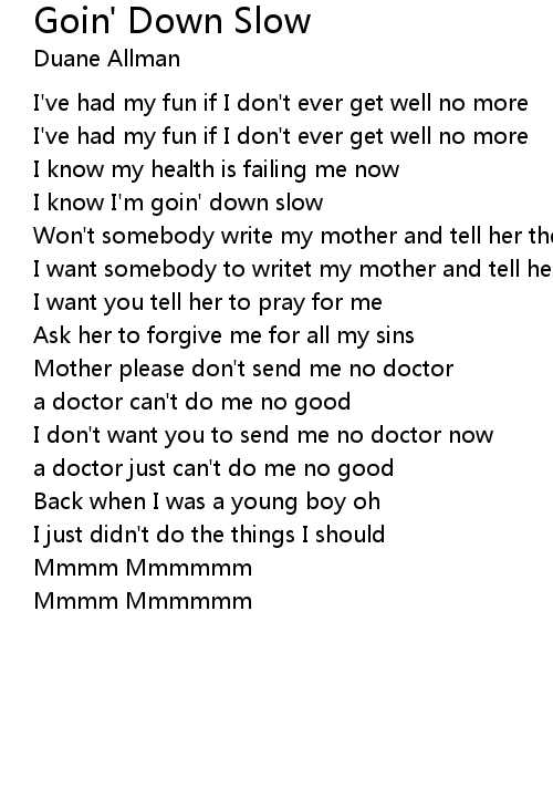 I know I'm goin' down slow |