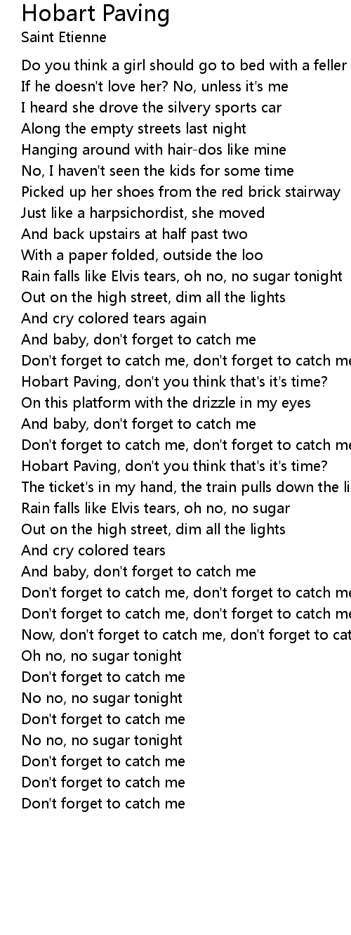 Rain falls like Elvis tears, oh no, no sugar tonight |