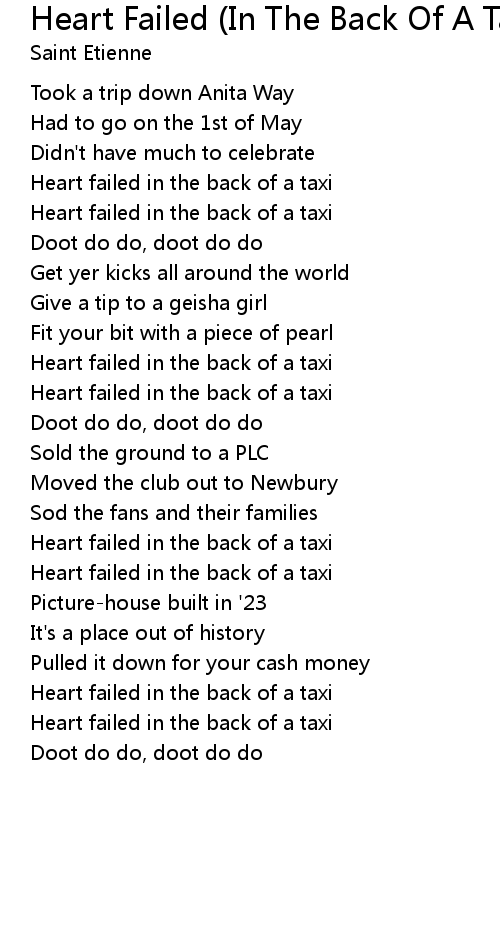 Heart failed in the back of a taxi |