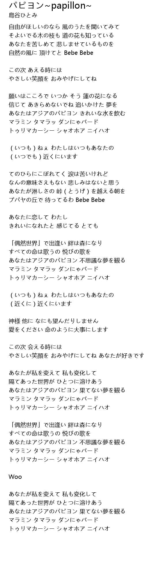 | 自然の風に 頂けてと Bebe Bebe | |