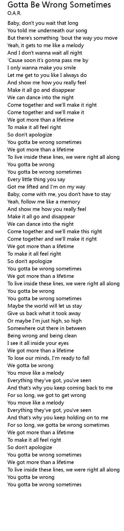 For so long, we gotta be wrong sometimes |