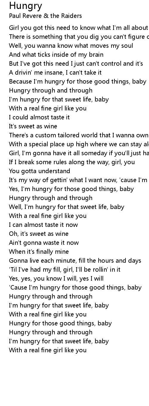 'Cause I'm hungry for those good things, baby |