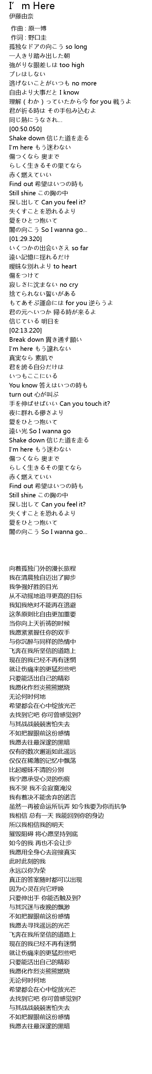 | [00:54.240] | I'm here もう迷わない |