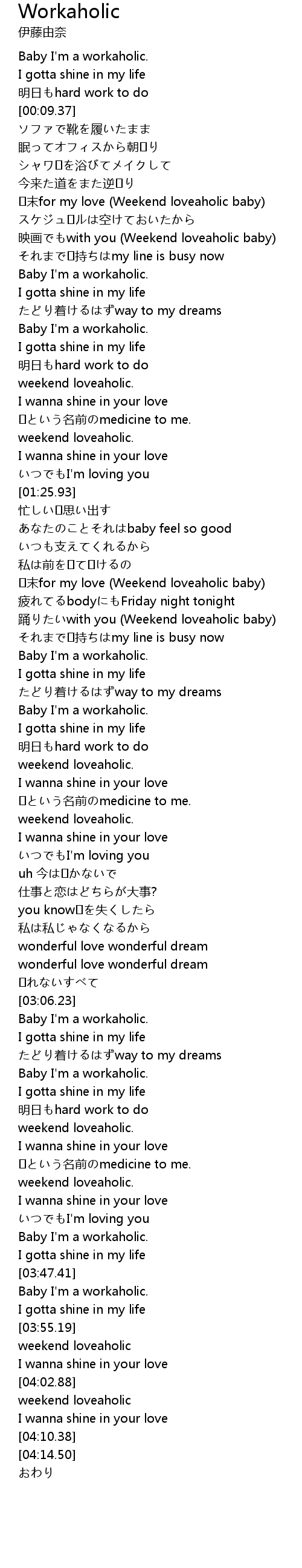 | [03:43.39] | Baby I' m a workaholic. |