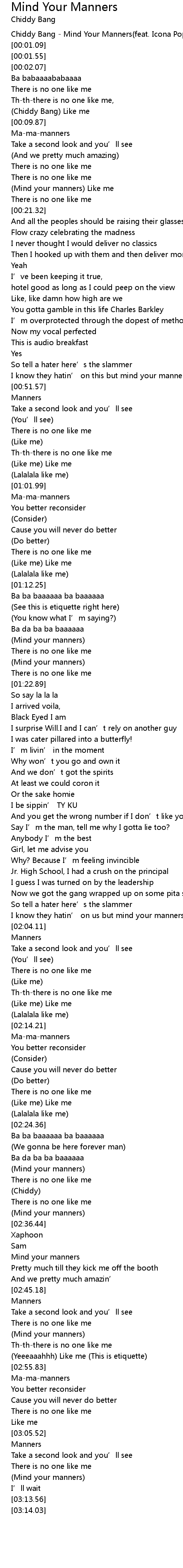 | [02:56.33] | Ma-ma-manners |