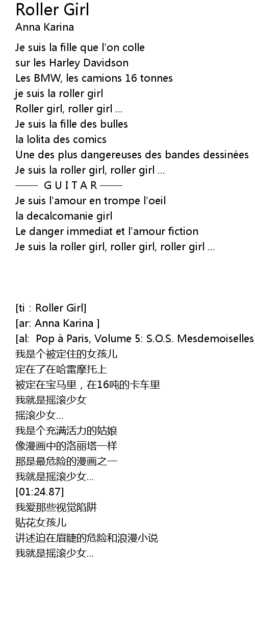 | [02:01.16] | Je suis la roller girl, roller girl, roller girl ... |