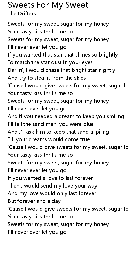 'Cause I would give sweets for my sweet, sugar for my honey |