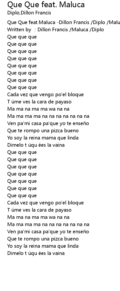 | [00:00.00] | Que Que feat. Maluca Dillon Francis Diplo Maluca |