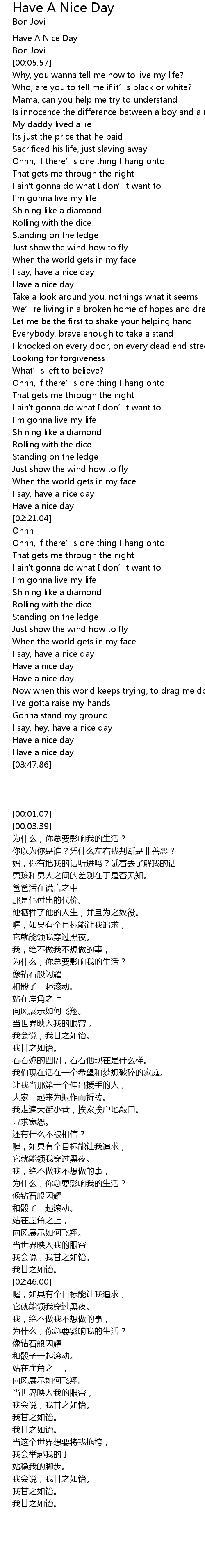 | [00:01.07] | Have A Nice Day |
