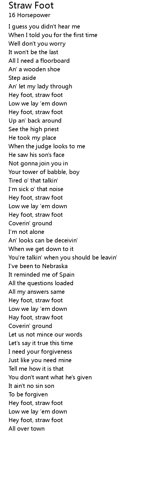 Hey foot, straw foot |