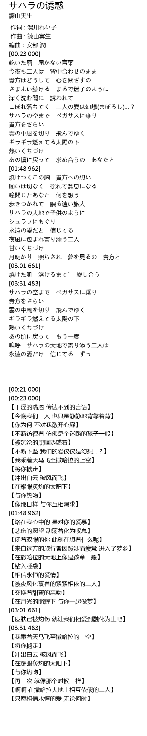 | [04:03.000] | 嗚呼 サハラの大地で寄り添う二人は |