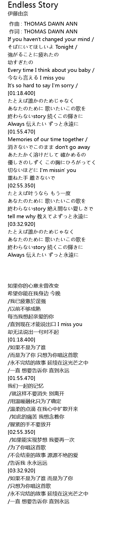 | [03:21.030] | tell me why 教えてよずっと永遠に |