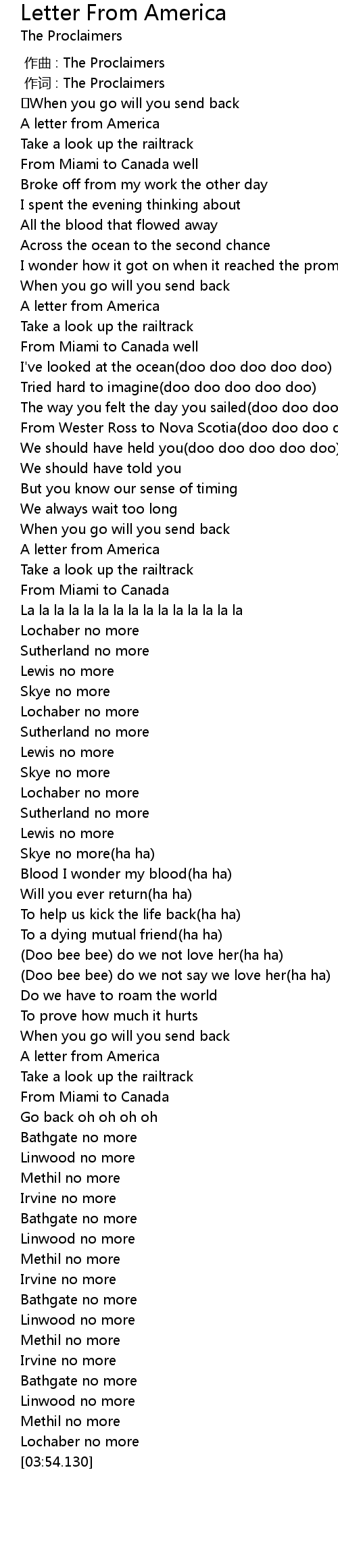 | [01:18.280] | From Wester Ross to Nova Scotia(doo doo doo doo doo) |