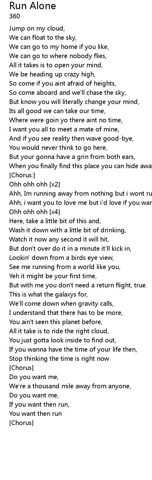 Ahh, Im running away from nothing but i wont run alone, |