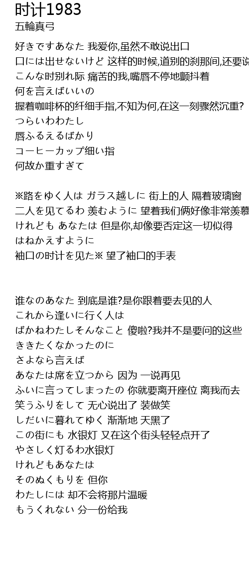 | この街にも 水银灯 又在这个街头轻轻点开了 | |