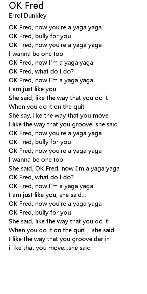 | [01:33.25] | She said, OK Fred, now I'm a yaga yaga |