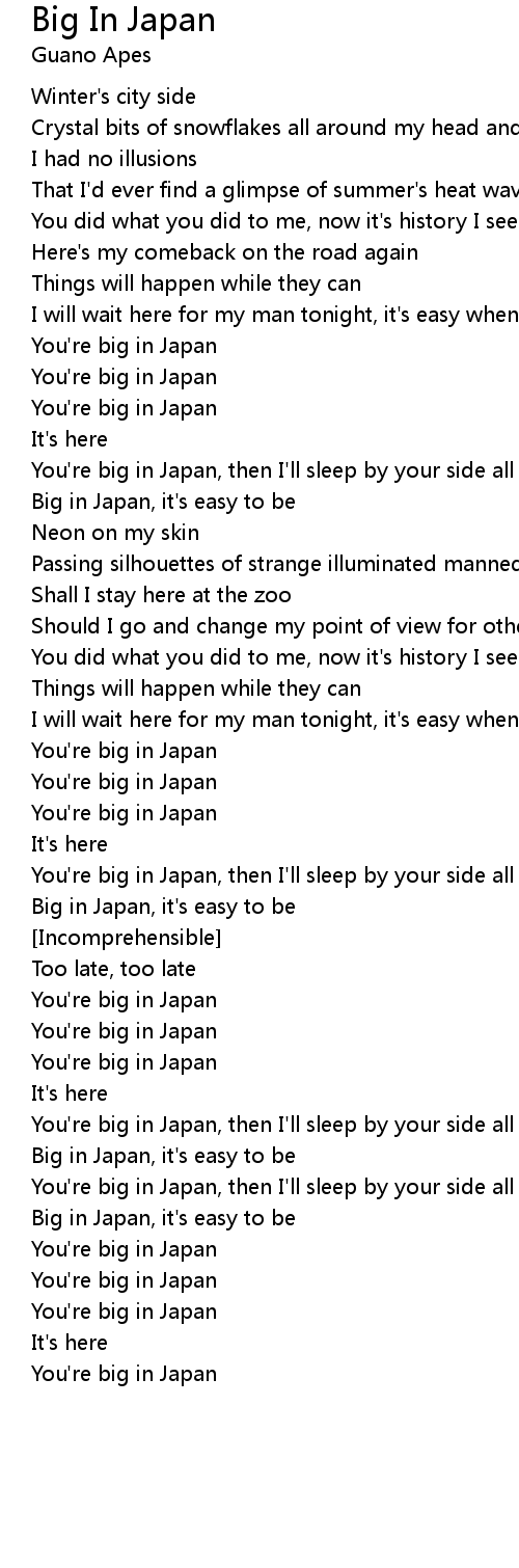 I will wait here for my man tonight, it's easy when you're big in Japan |