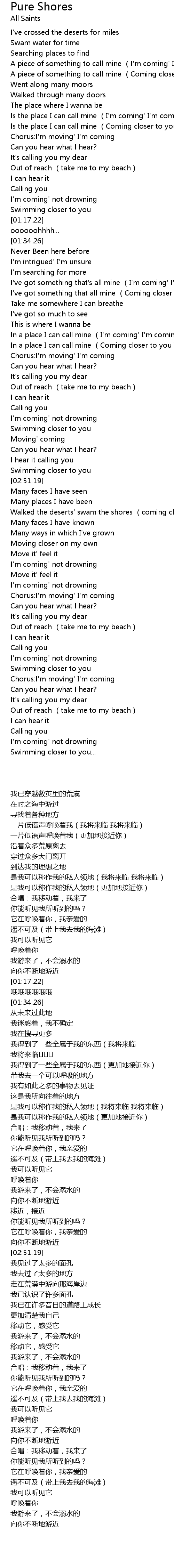 | [02:58.44] | Walked the deserts' swam the shores (coming closer to you) |