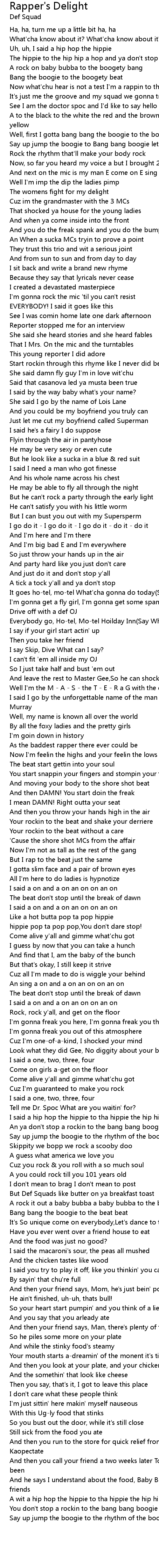 I said a hip hop the hippie to tha hippie the hip hip a hop |