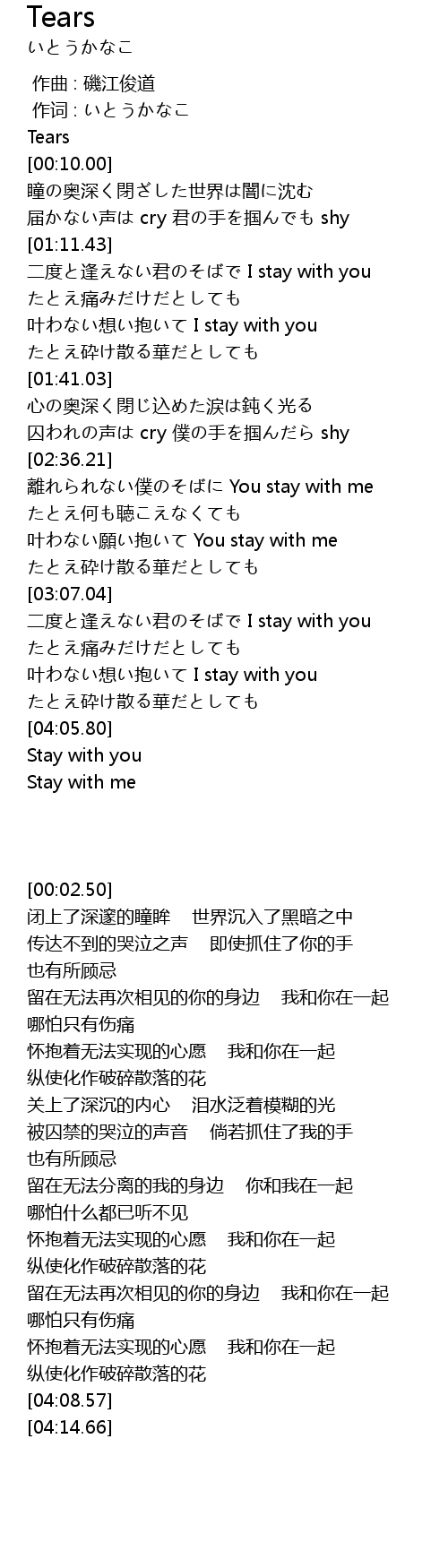 | [00:02.50] | Tears |