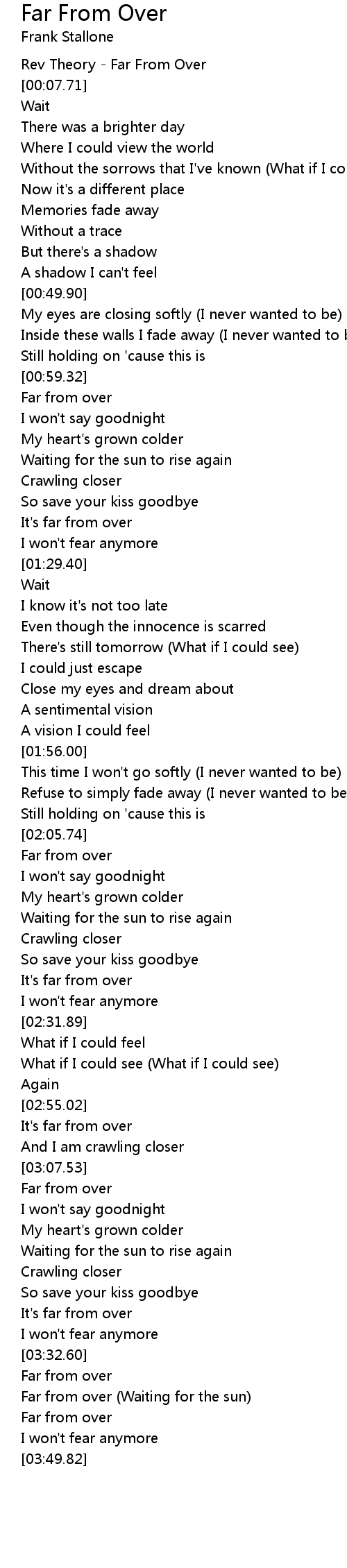 [03:35.82] Far from over (Waiting for the sun)
