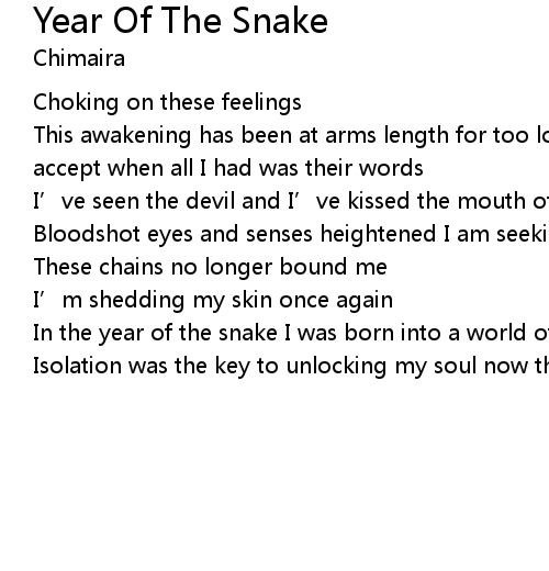 | Song | Year Of The Snake |