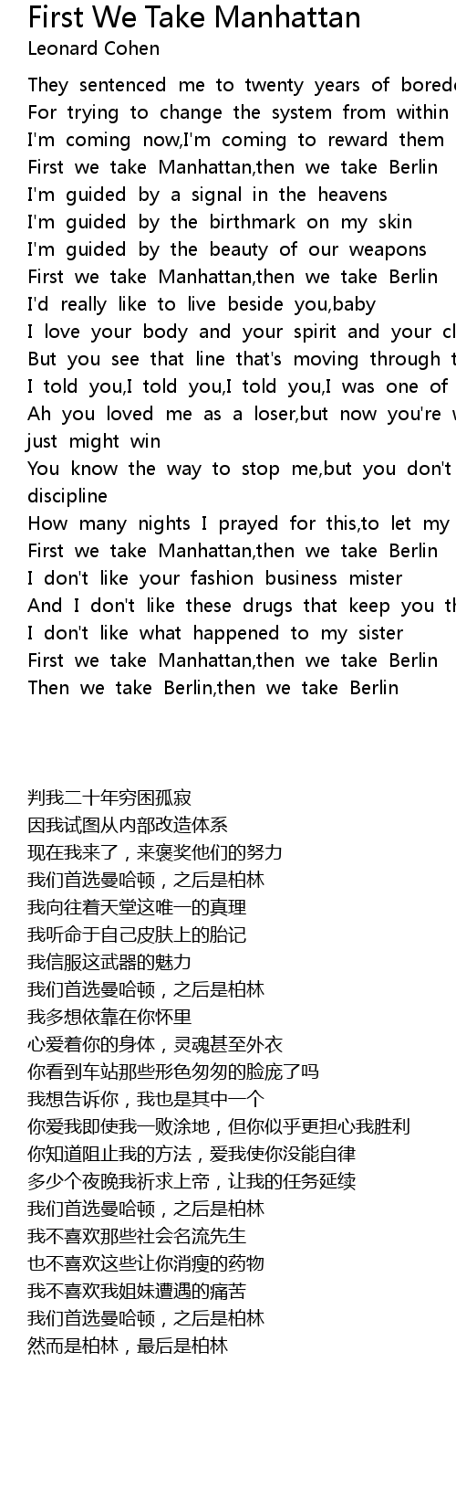 First we take Manhattan,then we take Berlin |