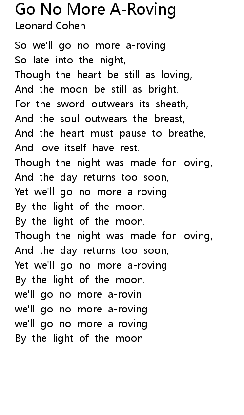 So we'll go no more a-roving |