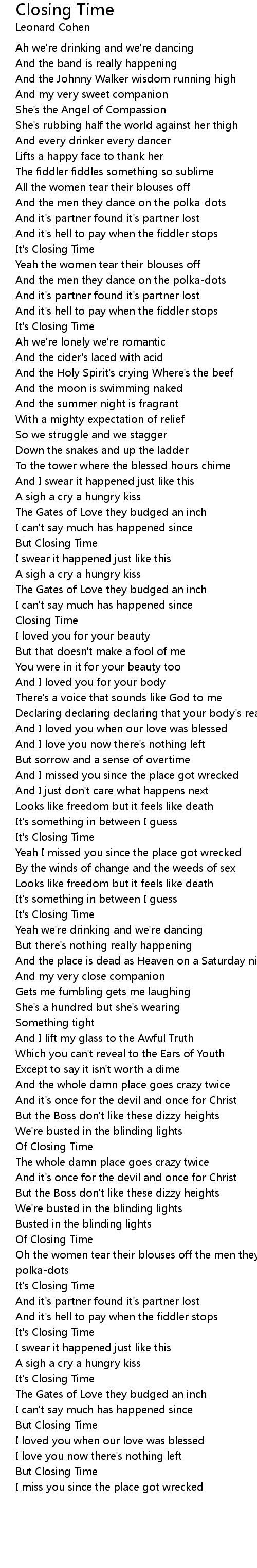 But Closing Time |
